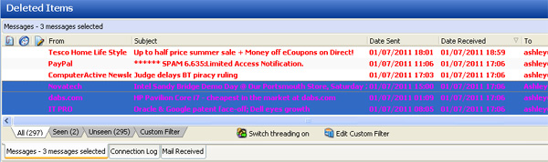 It is also possible to sort within a thread, by any of the displayed columns - for the first sort, just click on the column header. For subsequent sorts, hold the SHIFT key and click the appropriate column header.